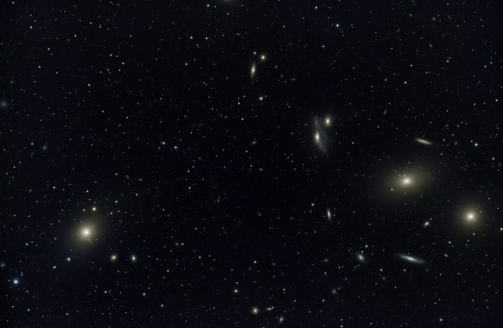 Ziel war diesmal die Riesengalaxie Messier 87 mit den angrenzenden Makarjanschen Kette. Auf dem Bild sind auch noch eine ganze Menge an weiteren Galaxien zu finden.